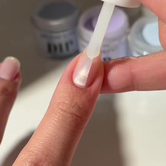 Appliquez une fine couche de Base Coat sur l’ongle et plongez votre doigt dans la poudre.
